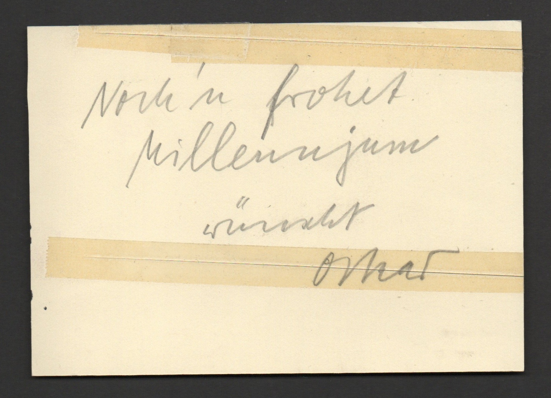 verso „Noch’n frohet Milennjum wünscht Oskar“