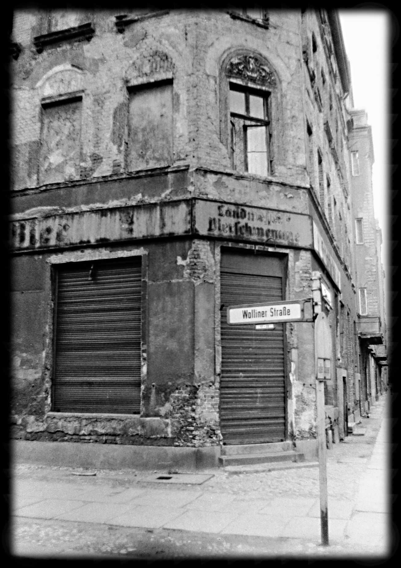 Berlin-Mitte, Ecke Wolliner StraßeSW-Fotografie auf Fuji Christal Archive